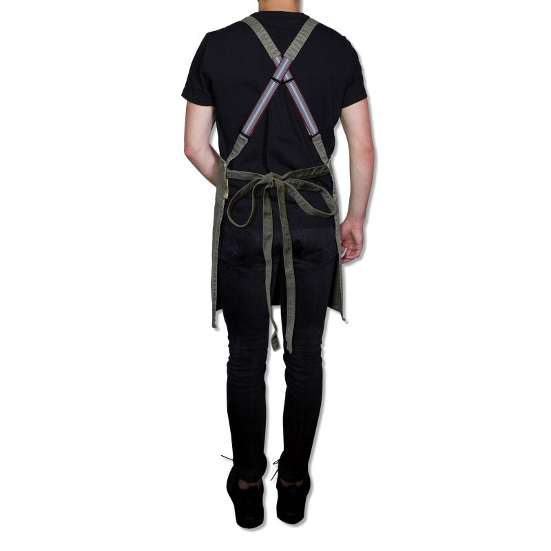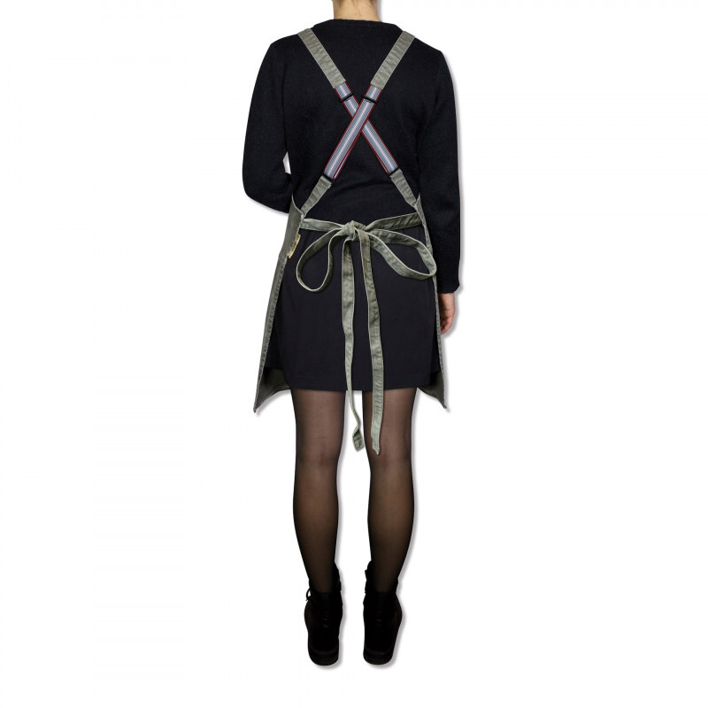 Il s'ajuste parfaitement à votre corpulence grâce aux bretelles croisées, réglables dans le dos. Rangez vos accessoires et vos effets personnels dans la grande poche latérale du tablier.
