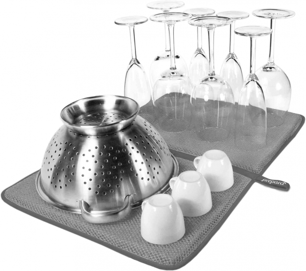 Le tapis de séchage antibactérien Prépara est en microfibre de polyester, matière innovante de structure alvéolaire qui permet à l’air de circuler librement au cœur du textile. Sa composition accélère le séchage de votre vaisselle et lui garantit un grand pouvoir absorbant.