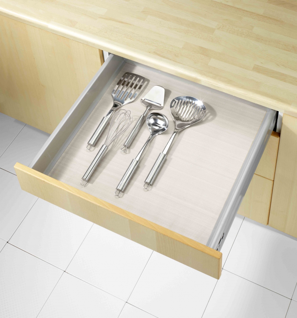Grâce à ce fond de tiroir antidérapant, les verres, casseroles et ustensiles restent bien en place, ils ne glisseront plus dans le tiroir.