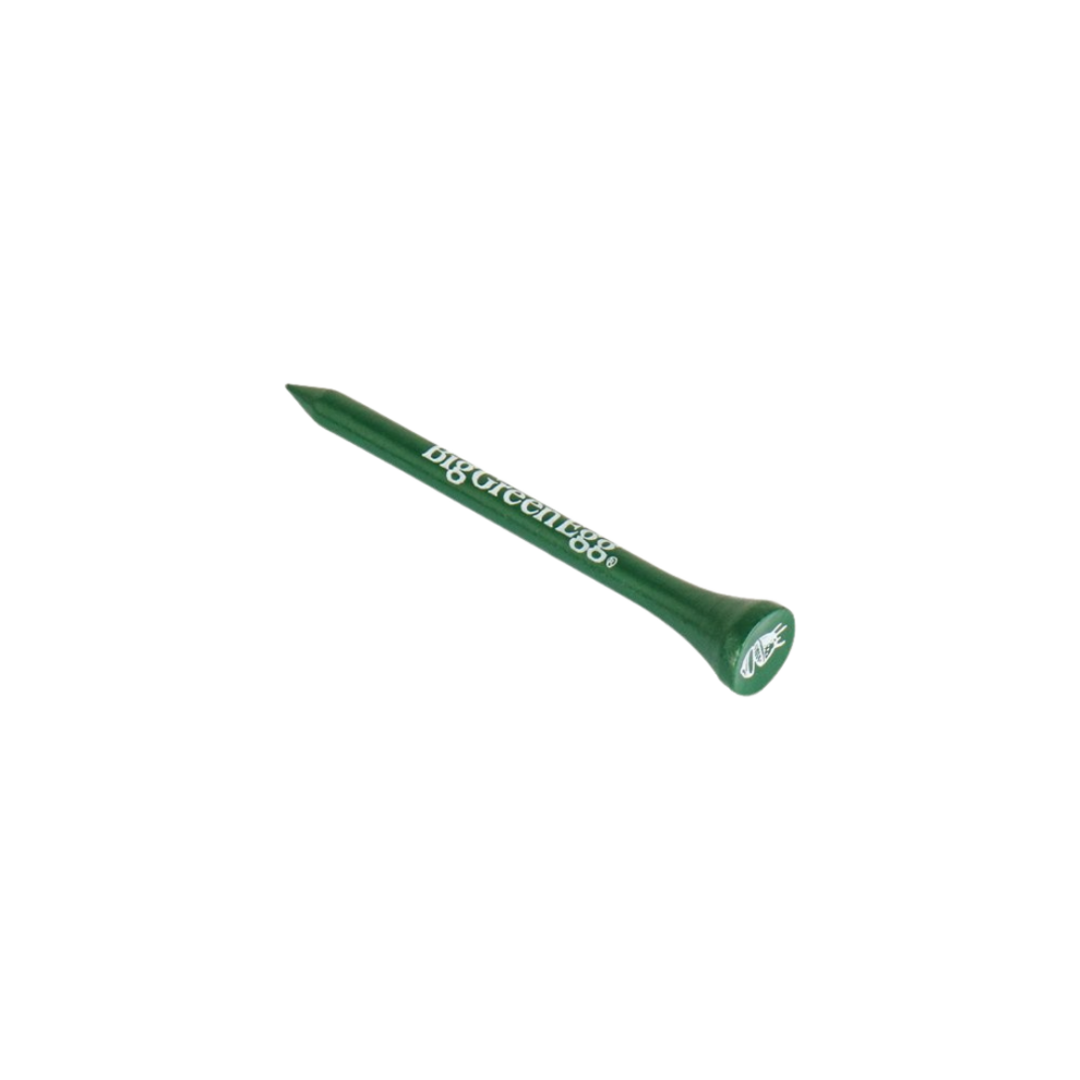 Ces tees en bois sont verts, le même vert que votre EGG. Vous pouvez trouver le logo Big Green Egg en lettres blanches sur le côté de la pointe. En haut, vous pouvez voir un Big Green Egg blanc.