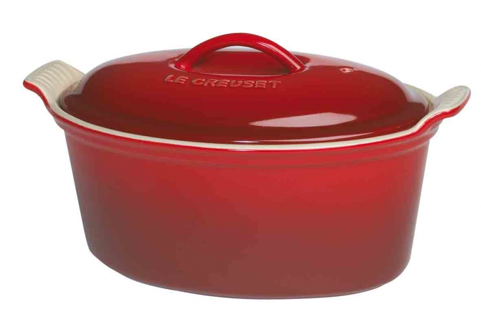 Accueil > Cuisson > Plat à rôtir > Terrine à Foie gras ovale avec sa presse 20 cm 1.1 L - Coloris Cerise