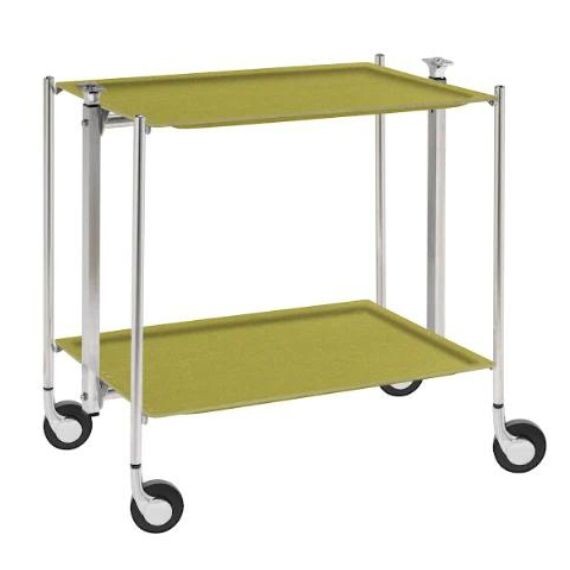 Préparez vos réceptions en toute sérénité avec la desserte de cuisine Textable de Platex et ses deux plateaux stratifiés coloris secret vert.
