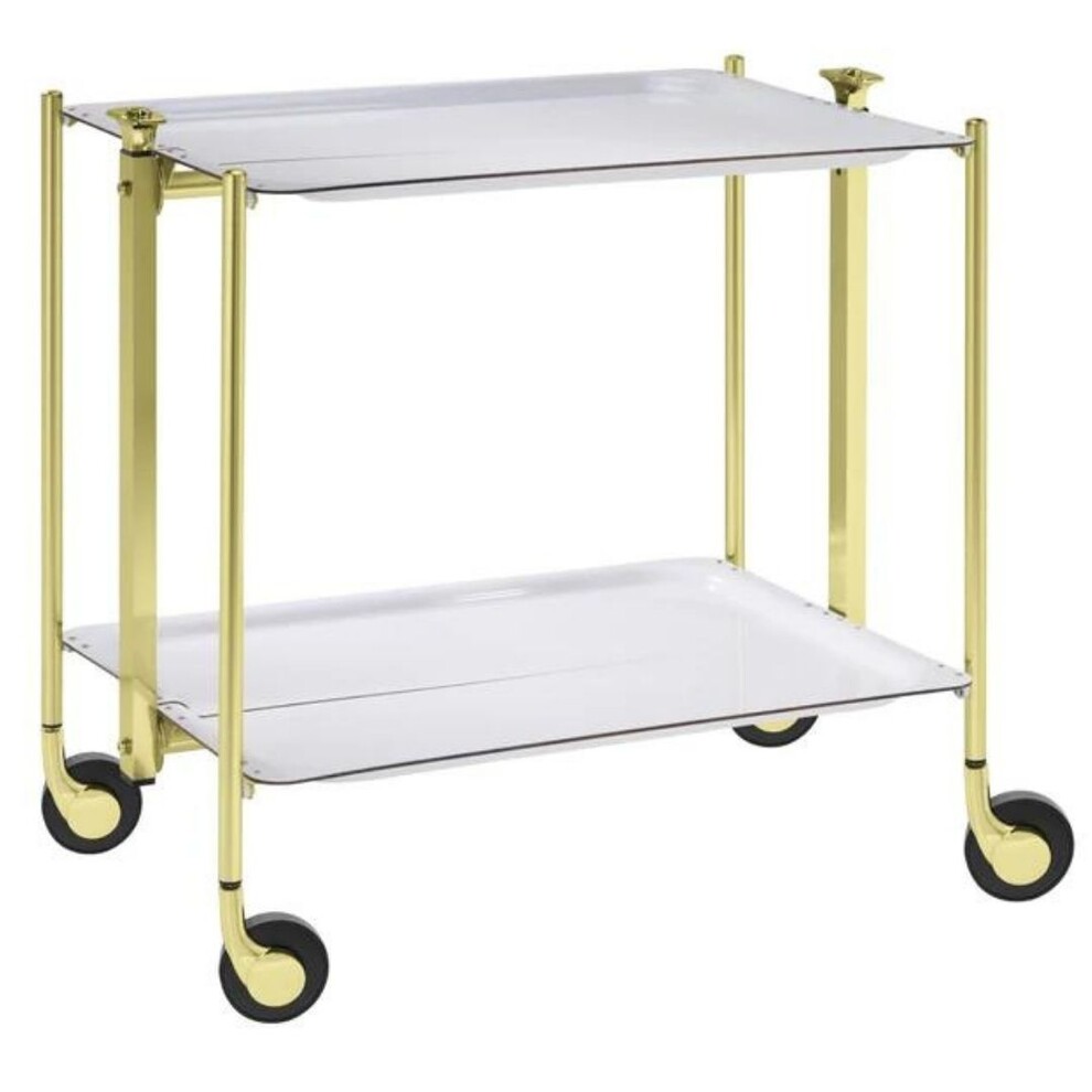 Préparez vos réceptions en toute sérénité avec la desserte de cuisine Textable de Platex et ses deux plateaux en acrylique coloris blanc et doré.