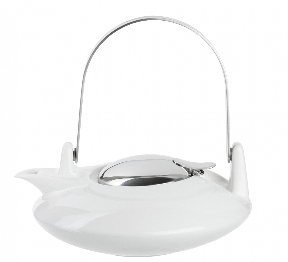 Théière Zen par Cristel, porcelaine et inox.