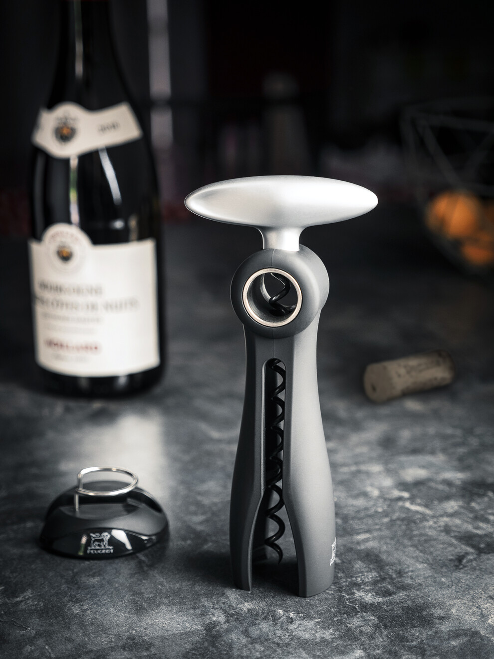 Disposant d'un socle intégrant un coupe-capsule, il se pose de manière distinguée sur votre table.