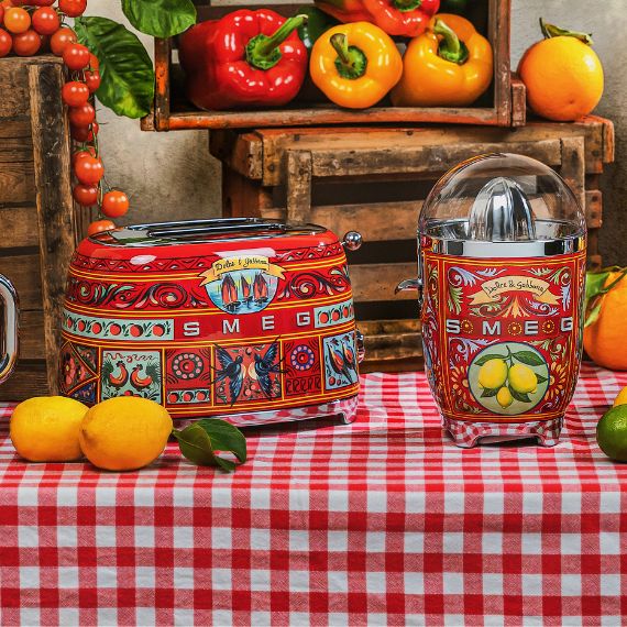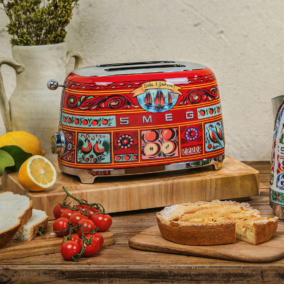 Transformez votre petit-déjeuner en une expérience d'amour et de style avec le Toaster 2 Tranches 2 Fentes Vintage Années 50 Dolce & Gabbana Sicily is my Love de la marque Smeg. Un mariage parfait de fonctionnalité et d'esthétique, ce toaster ajoutera une touche de glamour à votre cuisine.
