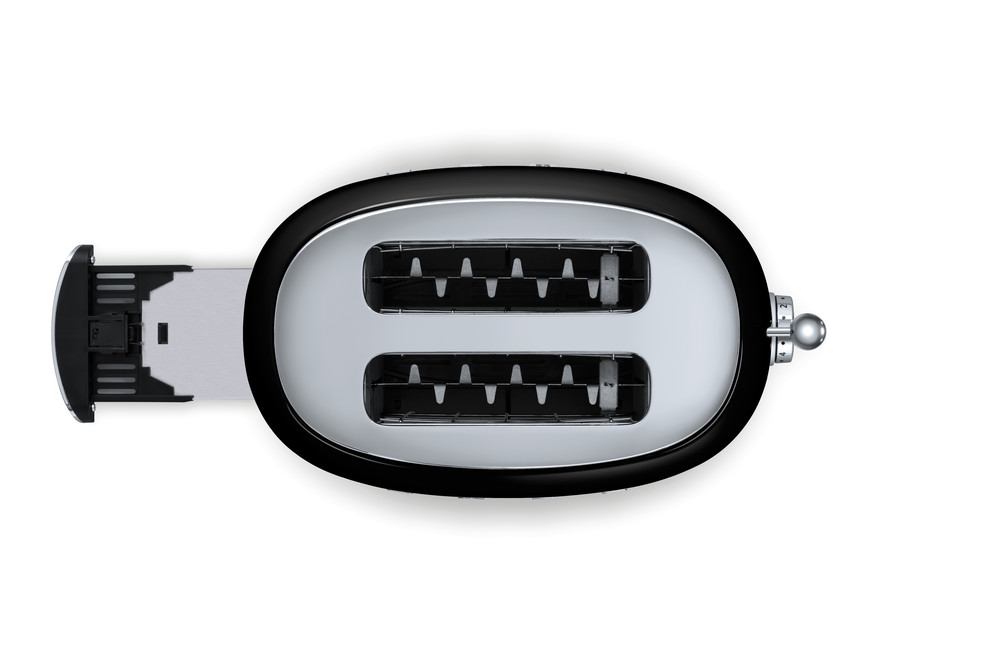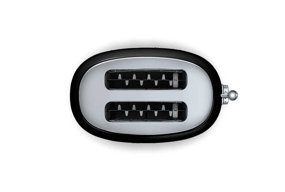 Conçu dans un style rétro années 50, ce toaster en acier, base chromée, levier en acier inox, possède des caractéristiques modernes et bien dans son temps.
