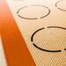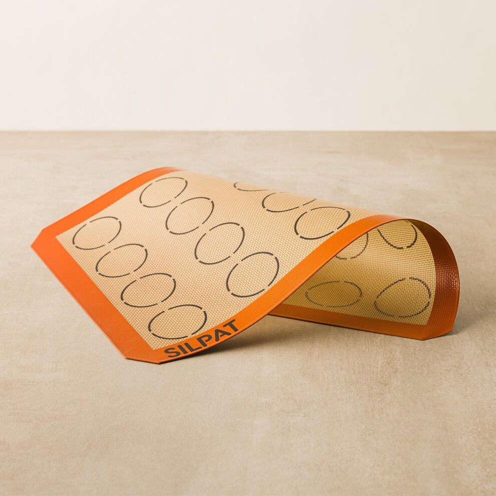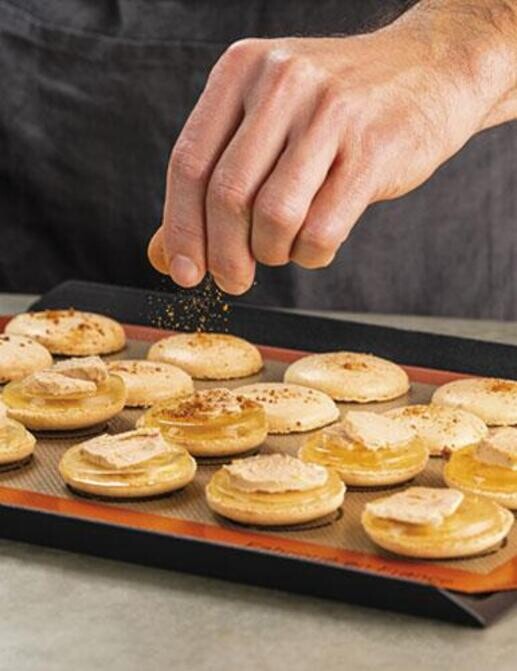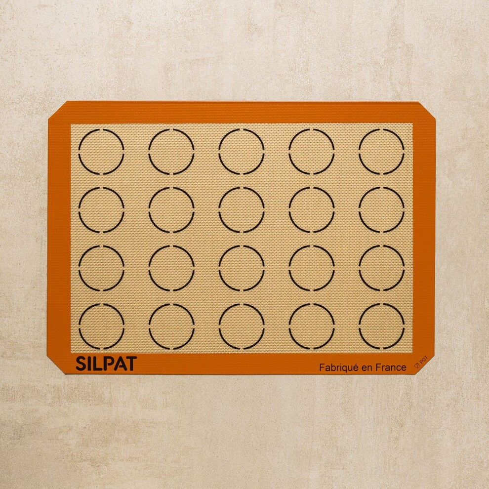 Le Tapis de cuisson Demarle Silpat spéciale macarons est idéale pour confectionner des macarons de taille régulière, pour les grilles et les plaques au format ½ pâtissier, vous permet de réussir facilement toutes vos préparations grâce aux empreintes en forme de ronds sur la toile qui vous permettent d'espacer suffisamment votre pâte et de calibrer avec justesse 20 coques de macarons pour déposer la quantité de pâte adéquate. Pour réussir le pochage parfait de vos coques de macarons, utilisez de préférence une poche à douille avec une douille lisse de 7mm.