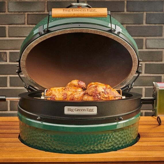 Transformez votre Big Green Egg en rôtisserie au feu de bois ! Ce kit de rôtisserie complet comprend un moteur 120 V puissant mais silencieux qui fera tourner les aliments de manière constante et uniforme sur la flamme. L'anneau en acier revêtu qui scelle l'EGG est conçu pour une rétention optimale de la chaleur et des saveurs. Le kit est livré avec la broche de rôtisserie traditionnelle, mais fonctionne également parfaitement avec des paniers de rôtisserie plats ou de style gobelet.