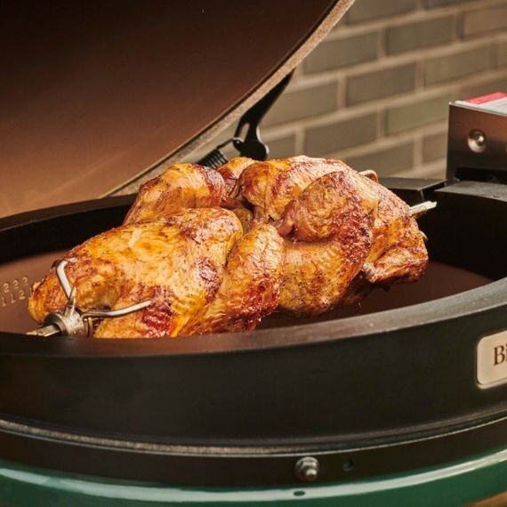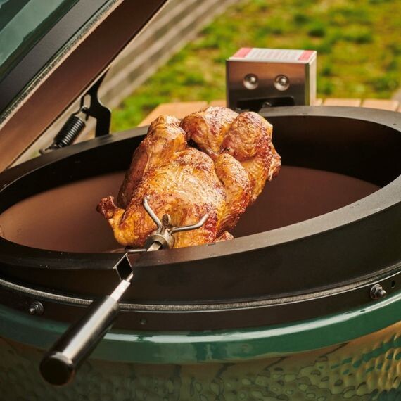 Transformez votre Big Green Egg en rôtisserie au feu de bois ! Ce kit de rôtisserie complet comprend un moteur 120 V puissant mais silencieux qui fera tourner les aliments de manière constante et uniforme sur la flamme. L'anneau en acier revêtu qui scelle l'EGG est conçu pour une rétention optimale de la chaleur et des saveurs. Le kit est livré avec la broche de rôtisserie traditionnelle, mais fonctionne également parfaitement avec des paniers de rôtisserie plats ou de style gobelet.