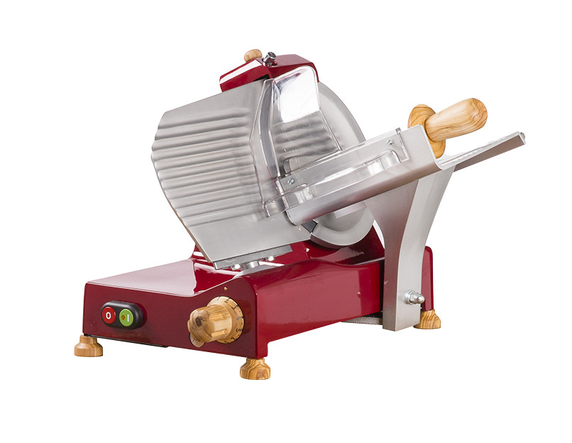 La trancheuse électrique Premium rouge de WismeR est construite à partir d'un alliage d'aluminium anodisé de haute qualité avec finition en bois d'Olivier. Elle dispose d'un plateau qui se décroche pour faciliter le nettoyage et garantir une hygiène parfaite.