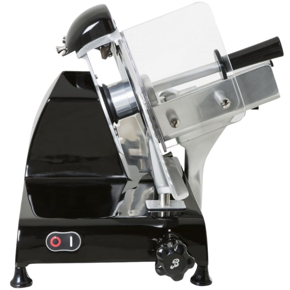 Pièces amovibles : Disque pare-lame, pressamerce, Plateau port-aliment renversable mais non amovible, Déflecteur de tranche