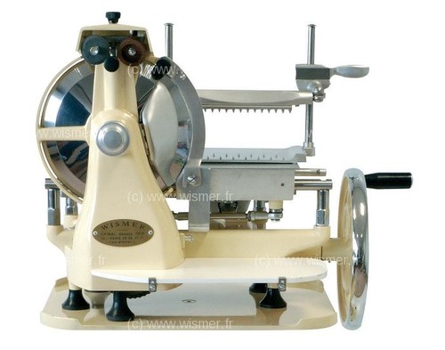 La trancheuse à jambon manuelle de Wismer est un ustensile de découpe hors normes dans le monde de la coutellerie : son design rétro et sa taille imposante font rêver plus d'un amoureux de bonne chère.