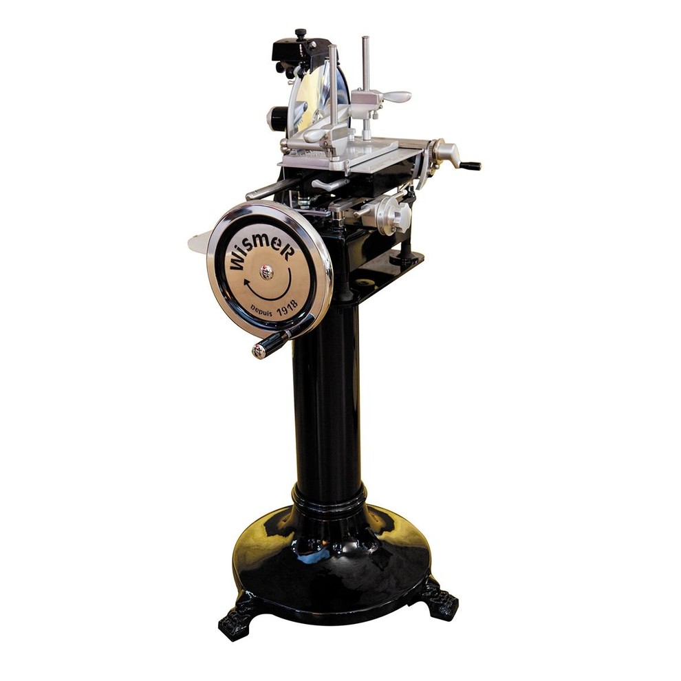 La trancheuse à jambon manuelle de Wismer est un ustensile de découpe hors normes dans le monde de la coutellerie : son design rétro et sa taille imposante font rêver plus d'un amoureux de bonne chère.