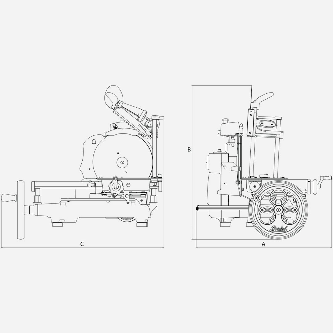 Détails :Levier latéral confortable pour le mouvement du protège-lame; Toutes les décorations et la signature Berkel sont peintes.