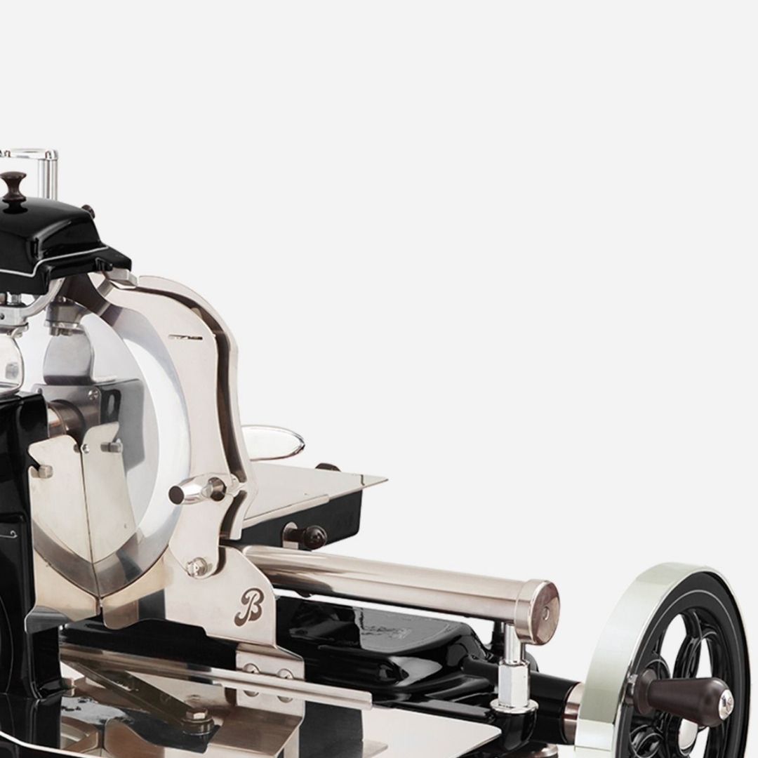 La Volano de Berkel est bâti en alliage spécial d'aluminium et possède un pied en acier inoxydable pour une stabilité maximale durant l'utilisation. La lame en acier chromé de 300 mm permet la réduction des déchets et assure des tranches uniformes grâce à son profil professionnel. La Volano garantit également une précision impressionnante avec un système d'avancement rapide à poignée de réglage millimétrique de la plaque. Le volant de la trancheuse possède un profil carré et équilibré qui permet de bloquer la rotation dans n'importe quelle position. La stabilisation est assurée par le pieds, solide et élégant. Pour plus de précision, la poignée de réglage de l'épaisseur de tranche propose 8 positions qui règlent la tranche entre 0.15 et 1.5 mm. Le nettoyage général est facilité par le système de retrait rapide du corps de fixation du déflecteur. La sécurité est assurée l'anneau de protection totale de la lame avec un système de déclenchement manuel.