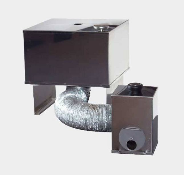 Un tuyau flexible relie l’enceinte de fumage au fourneau.