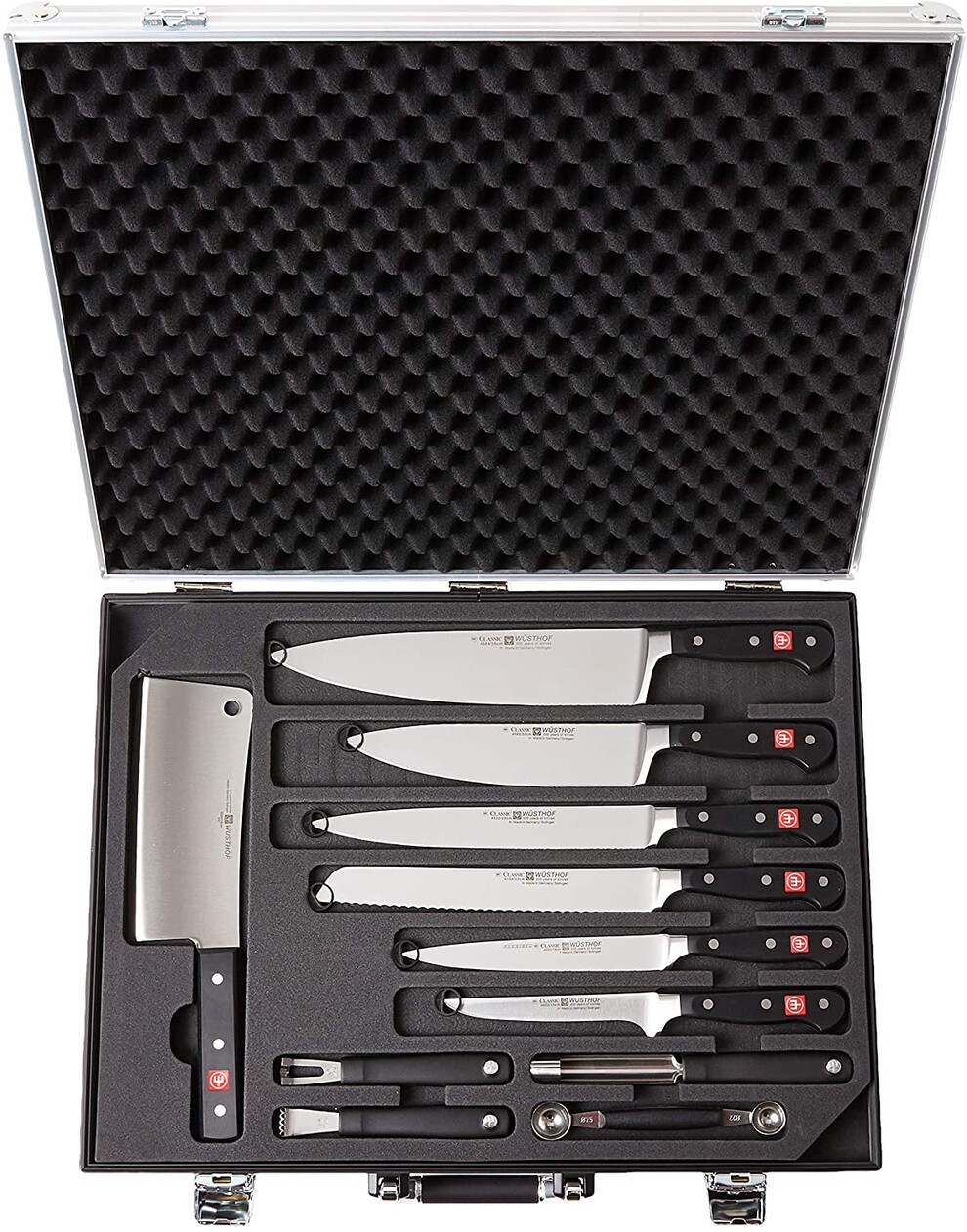 Cette mallette de coutellerie de chef de 2 étages composée de 25 pièces Classique proposée par la marque de coutellerie allemande Wüsthof est votre meilleur allié pour un travail polyvalent et de qualité pour des plats toujours plus réussis.