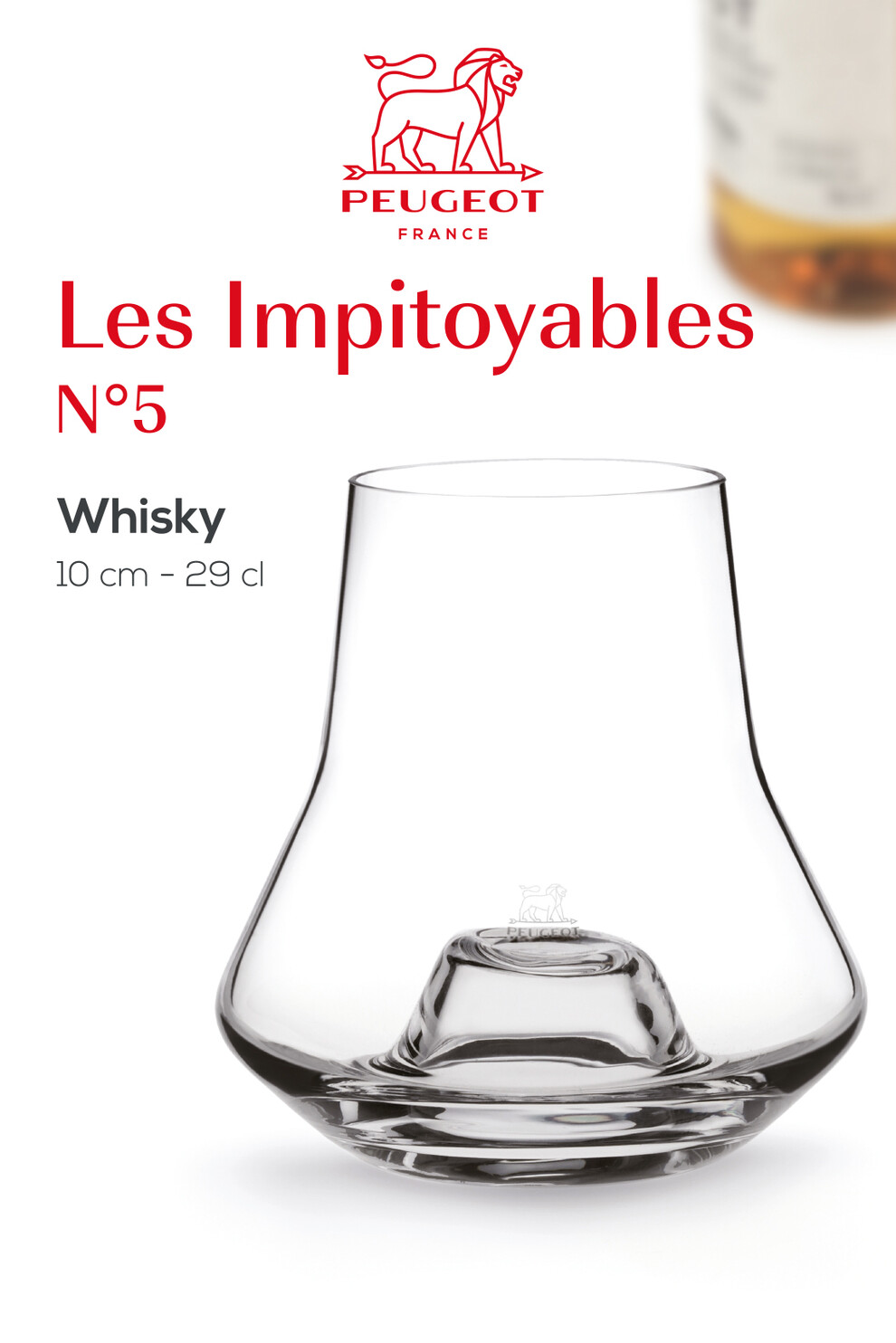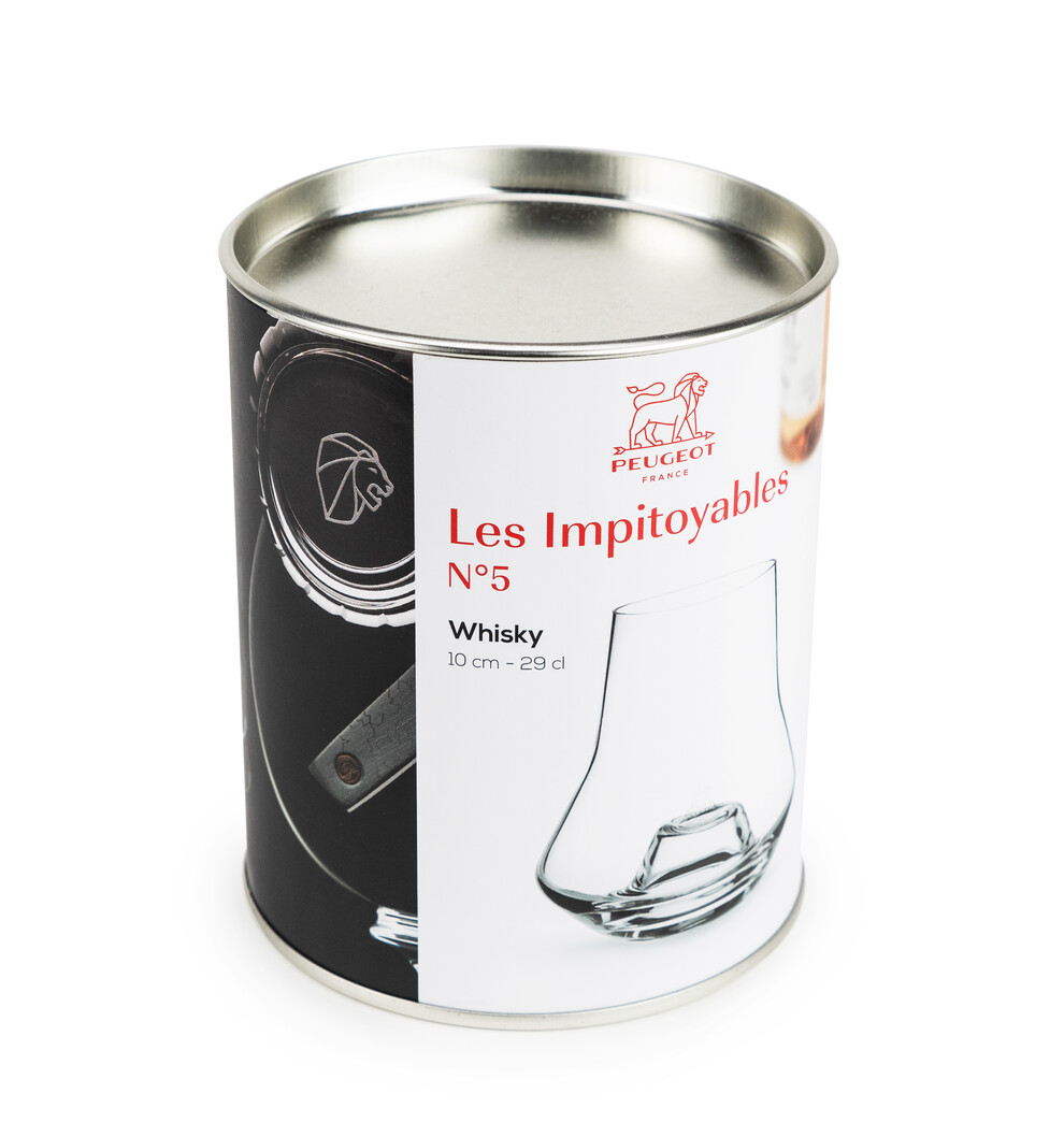 Verre à whisky et eaux de vie issu de la collection Les Impitoyables n°5 de Peugeot. Fabriqué en verre soufflé bouche, sa forme unique conçue à l'image d'un verre tulipe permet d'aérer et de libérer tous les arômes de votre spiritueux.