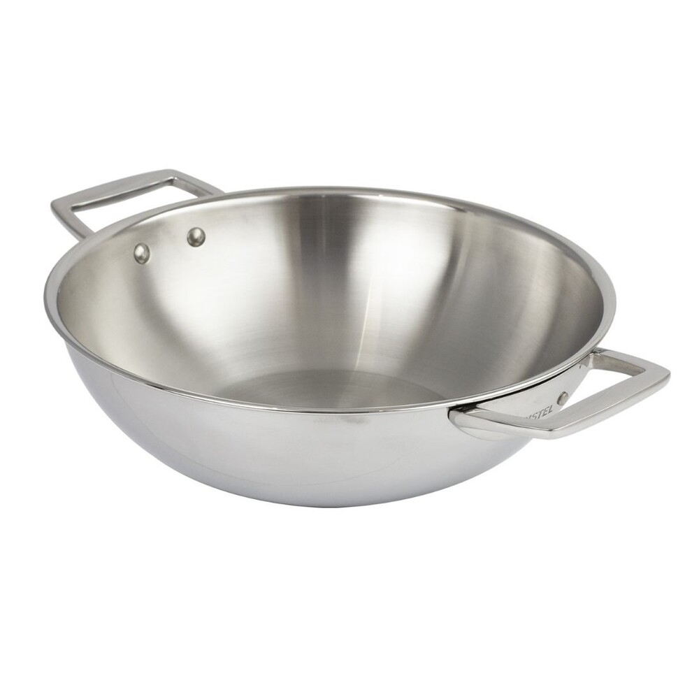 Wok castel pro inox 2 anses 34 cm sans couvercle
