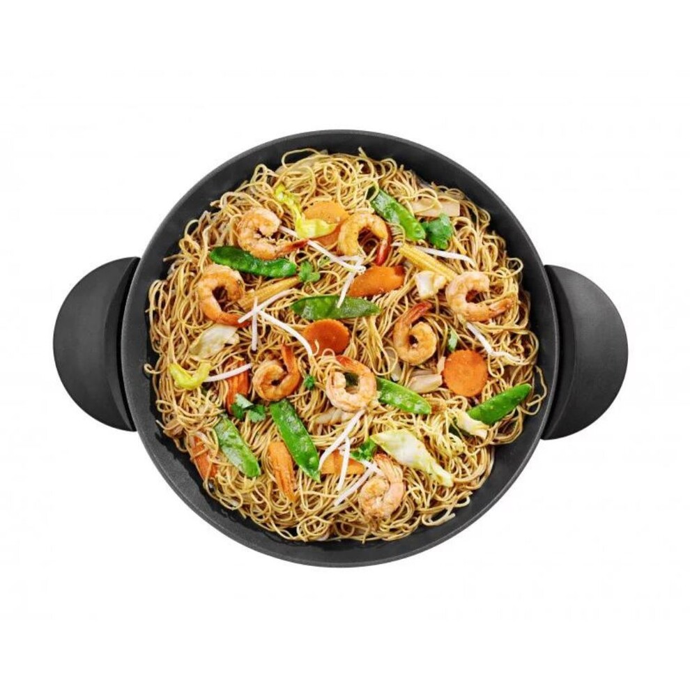 La diffusion uniforme de la chaleur est très efficace grâce à la cuve massive en fonte d'aluminium, combiné à une puissance élevée 1700 W et une résistance moulée et montante dans la cuve. la cuisson est rapide et performante ! La forme arrondi du wok permet de melanger les aliments avec facilité. La cuve d'une capacité de 5 litres permet de cuire les aliments pour 8 personnes. Le wok possède un thermostat réglable sur 10 positions, pour maitriser votre cuisson à la perfection.