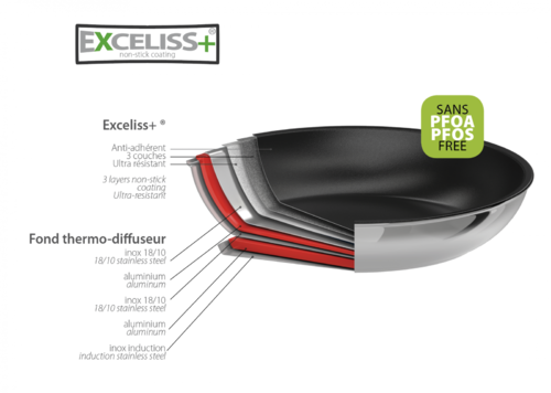 - Les caractéristiques du wok en inox revêtu de l’anti-adhérent Excalibur Casteline amovible :