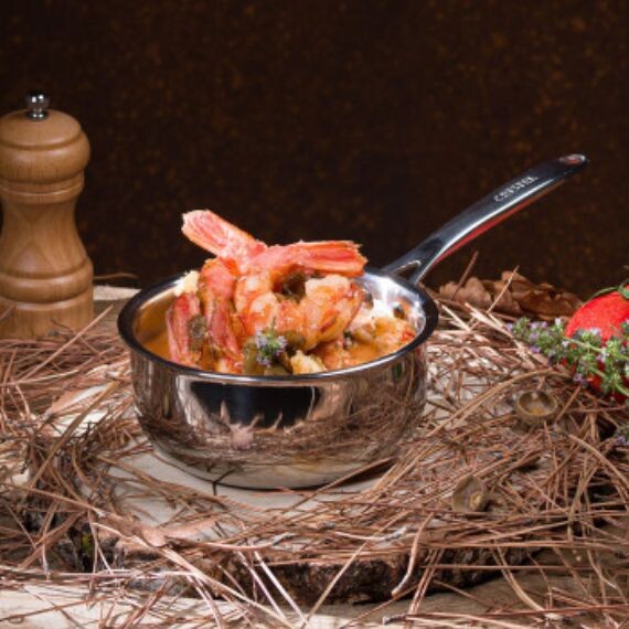 8) Faire revenir dans une poêle les gambas 20 secondes de chaque côté puis les repartir dans les mini casseroles.