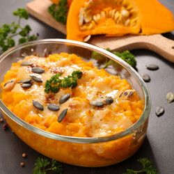 5/ Verser le mélange sur le potiron et enfourner 35 minutes.