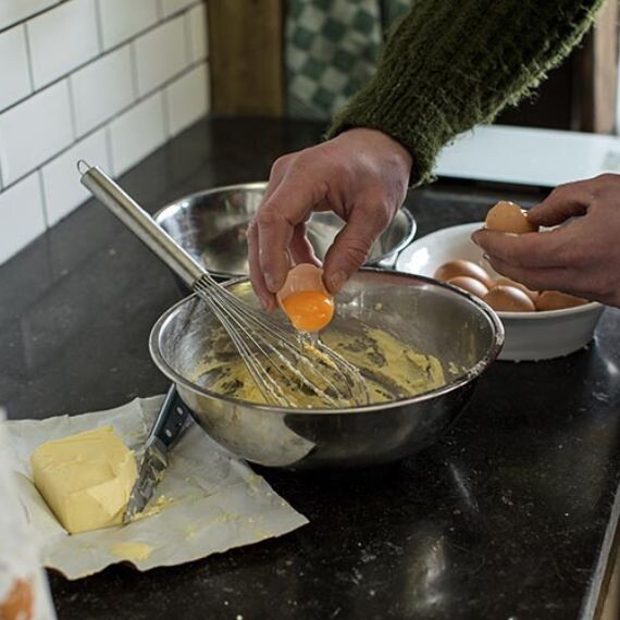 - Allumez le Big Green Egg et faites chauffer, convEGGtor et grille en acier inoxydable placés à l’intérieur, à 180 °C. Graissez un petit moule à kouglof avec du beurre.
