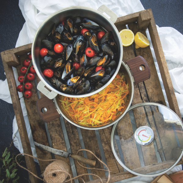 Découvrez une recette pour les amoureux des fruits de mer. L'eau contenue dans vos légumes permettront la cuisson au degré près de vos moules.