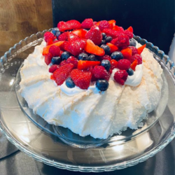 Ce dessert, finalement assez simple à réaliser, est un des plus jolis que je connaisse. Il est tout en légèreté et tellement coloré que personne ne résiste. Ne vous arrêtez pas à la confection de la meringue, vous serez récompensés !