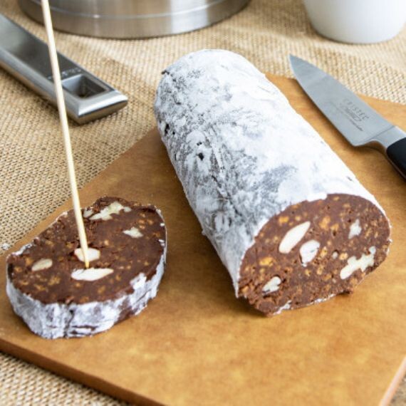 Un saucisson, un peu spécial... Un trompe l'oeil en chocolat gourmand ! Parfait pour surprendre et régaler vos convives ou vos enfants.