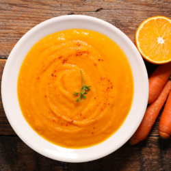 Ajouter les carottes épluchées et coupées en morceaux, saupoudrer avec 1 cuillère à soupe de cumin faites revenir quelques instants. Mouiller avec un litre d’eau chaude et ajouter une tablette de bouillon de légumes. Laisser cuire à petits bouillons pendant environ 20 minutes.
