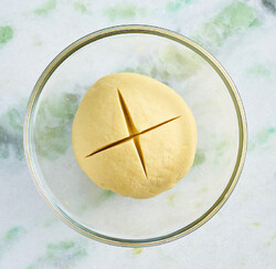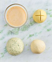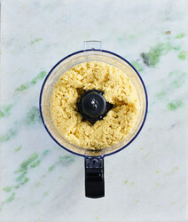 Placez le pain aux fruits dans le hachoir et mixez à plusieurs reprises au niveau 2 avec le bouton Impulsion/Marche jusqu’à ce que le pain soit crémeux. Répartissez le mélange uniformément entre les 2 emporte-pièces circulaires et lissez-le avec une petite cuillère mouillée.
