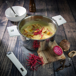 7/ Dresser le velouter avec la julienne de betterave par dessus.